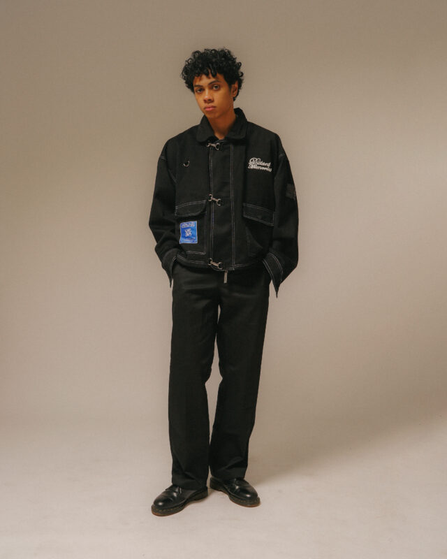 W.ESSENTIELS Label Bleu Sapeurs-Pompiers Fireman Work Jacket Merging utilitarian design with street-ready detailing, the FiremanJacket from W.ESSENTIELS stands out with its robust black luxurious canvas and hardware accents. Built with triple-prong metal clasps, contrast white stitching, and reinforced seams, the piece brings a tactical edge to everyday layering.