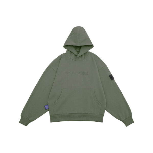 In this AFFINITY Hoodie we execute an impeccable Boxy Oversize Cut on mid-weight fleeceback cotton, enhance it with mono tonal Ultraheatpress render branding on Garment. Checkout the limited ashgrey leather patch.