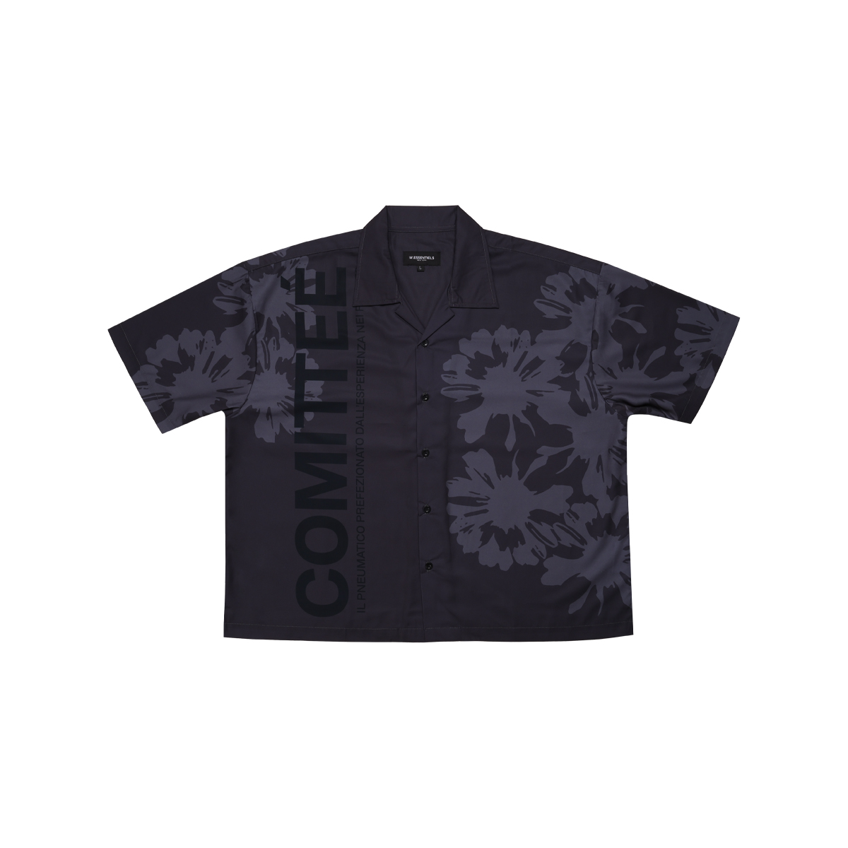 Blending military-grade structure with an artistic eye, the Mirage 2000 Open Collar Shirt channels dark floral energy with a stealth-like edge. Designed in a sharp boxy cut, this piece features an all-over abstract bloom pattern in deep graphite tones — both haunting and hypnotic.